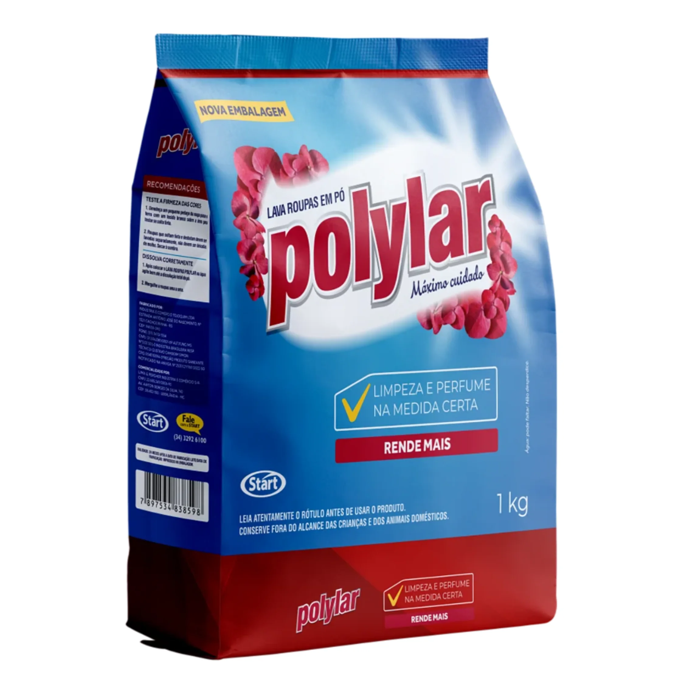 O sabão em pó Polylar 1kg da Start é um lava-roupas indicado para limpeza profunda e diária de diversos tecidos (algodão, poliéster), sendo eficaz na remoção de sujeiras e manchas. Com fórmula biodegradável, ele realça cores, perfuma, protege fibras delicadas e pode ser usado em lavagens à mão ou máquina.